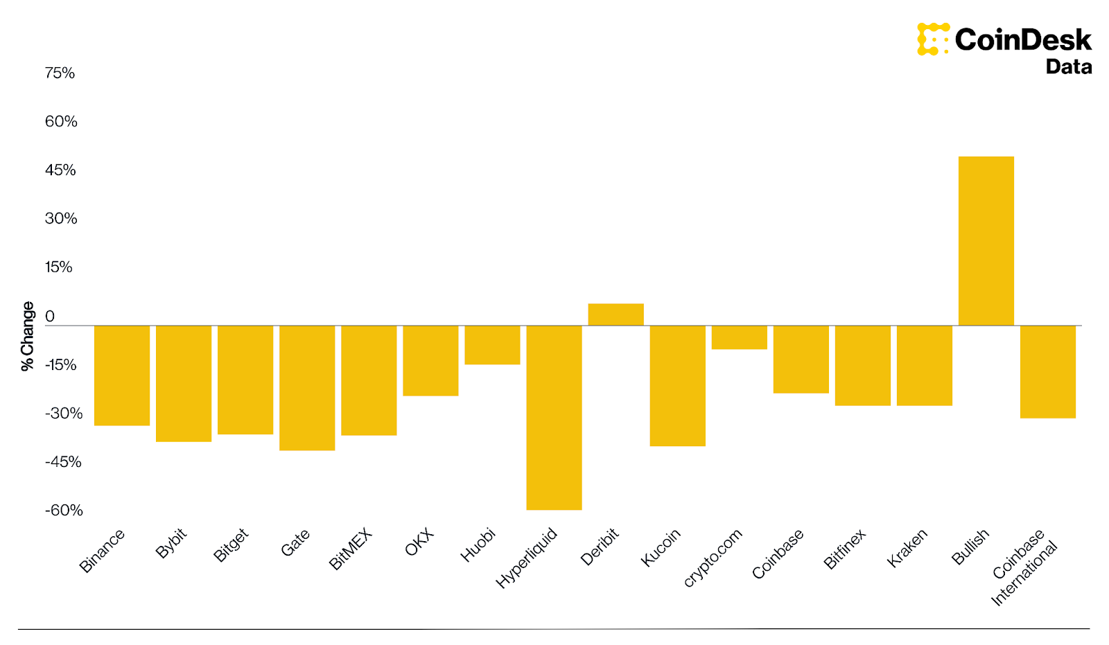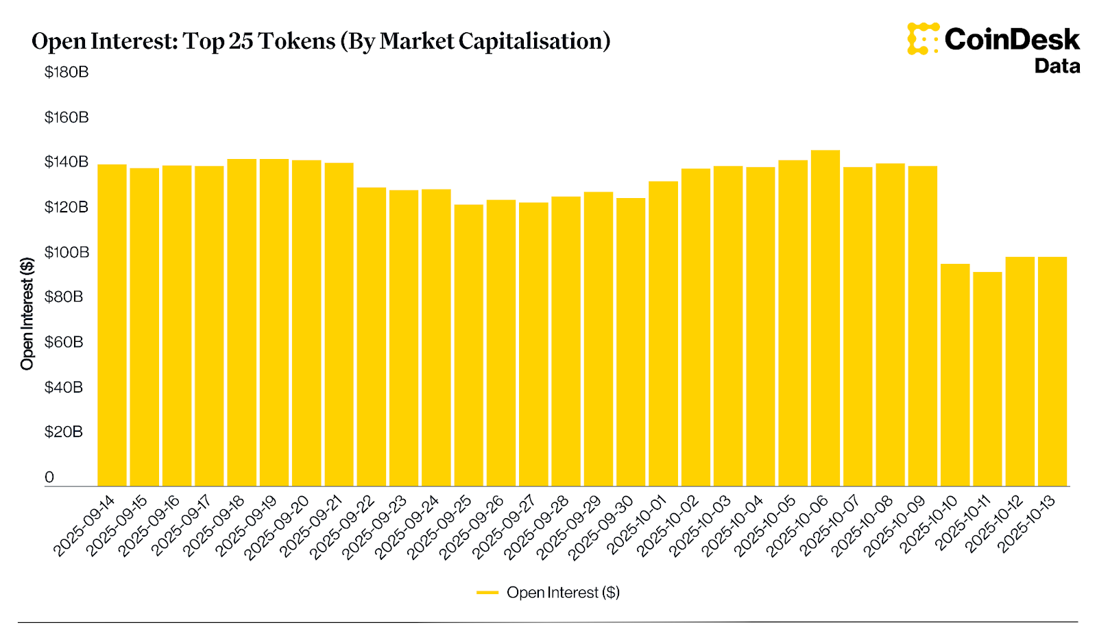 Согласно данным CoinDesk Data, общий открытый интерес по бессрочным фьючерсам упал на 43%, снизившись с 217 миллиардов долларов 10 октября до 123 миллиардов долларов к 11 октября. Самое большое однодневное сокращение произошло на Hyperliquid, где открытый интерес снизился на 57%, с 14 миллиардов долларов до 6 миллиардов долларов, поскольку позиции были принудительно ликвидированы. Наиболее тревожный поворот событий для тех, кто возложил свои надежды на такие платформы.